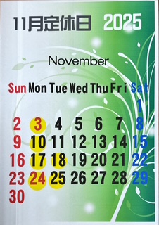 11月 定休日 2025/10/31 11月の定休日は、 11月3日、10日、17日、18日、24日、25日 になります。 店長不在日は、5日(水),16日(日)午後になります。 よろしくお願いします。