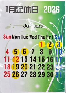 1月の定休日は、
