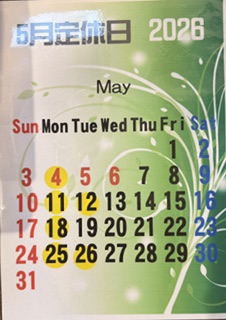 5月の定休日は、 5月4日、11日、12日、18日、25日、26日 になります。 よろしくお願いします。